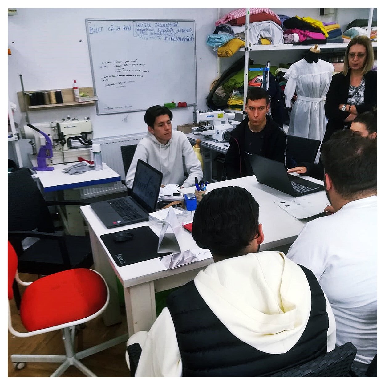 Daca va intrebati cine, cum si ce anume...ei bine tot clasa a XII a E, tot din cadrul Colegiului Economic Ion Ghica, tot in practica la partenerii nostri de la Feather Tailors.