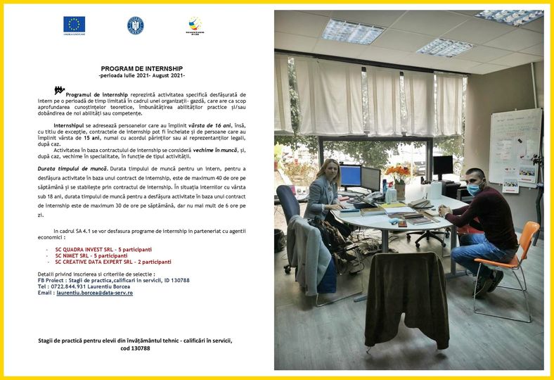 Caci programul de internship continua si in luna Septembrie si multumim pe aceasta cale partenerilor nostri din partea CREATIVE DATA EXPERT SRL.