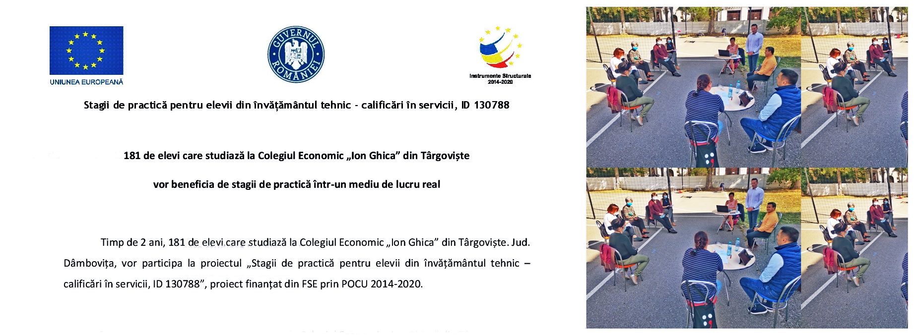 Pentru 7 elevi de la Colegiul Economic „Ion Ghica„ a debutat astăzi stagiul de practică la compania ”Quadra Invest” partener în cadrul proiectului „Stagii de practica pentru elevii din învățământul tehnic – calificări în servicii, cod 130788”.
