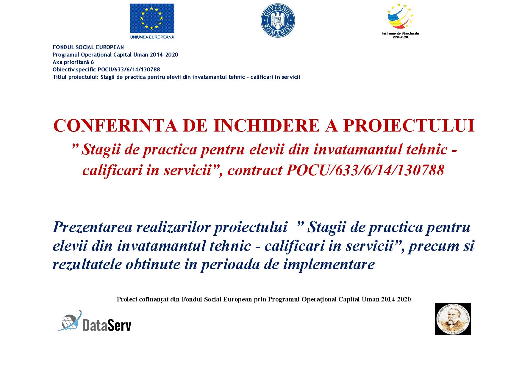 Le multumim elevilor de clasa a XII a, din partea Colegiului Economic Ion Ghica, pentru participarea lor la practica din cadrul proiectului.